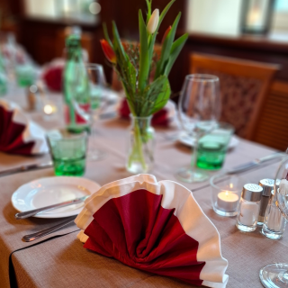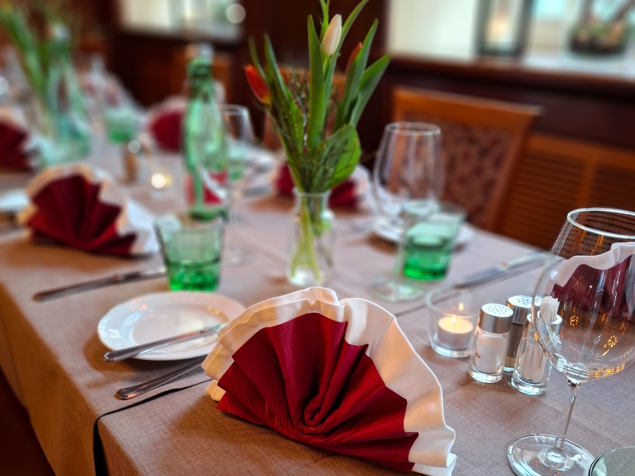 Darüber hinaus können Sie sich auf unsere professionelle und aufmerksame Bedienung verlassen. Unser engagiertes Personal kümmert sich um jeden Gast mit herzlicher Gastfreundschaft und sorgt dafür, dass Ihr Fest reibungslos und unvergesslich abläuft.